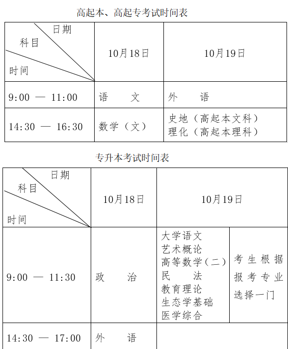 理科類、文科類(含體育類專業(yè)、藝術(shù)類專業(yè)):語文、數(shù)學(xué)(文)、外語。